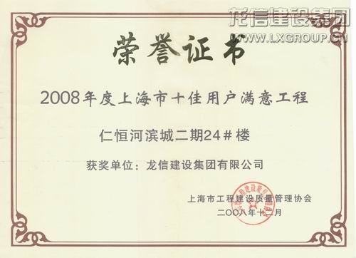 仁恒河滨城二期2008年度上海十佳用户满意工程