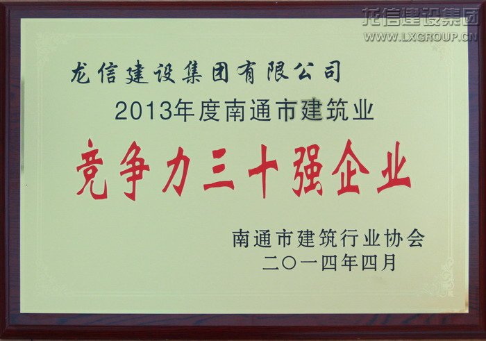 2013年度南通市建筑业竞争力三十强企业