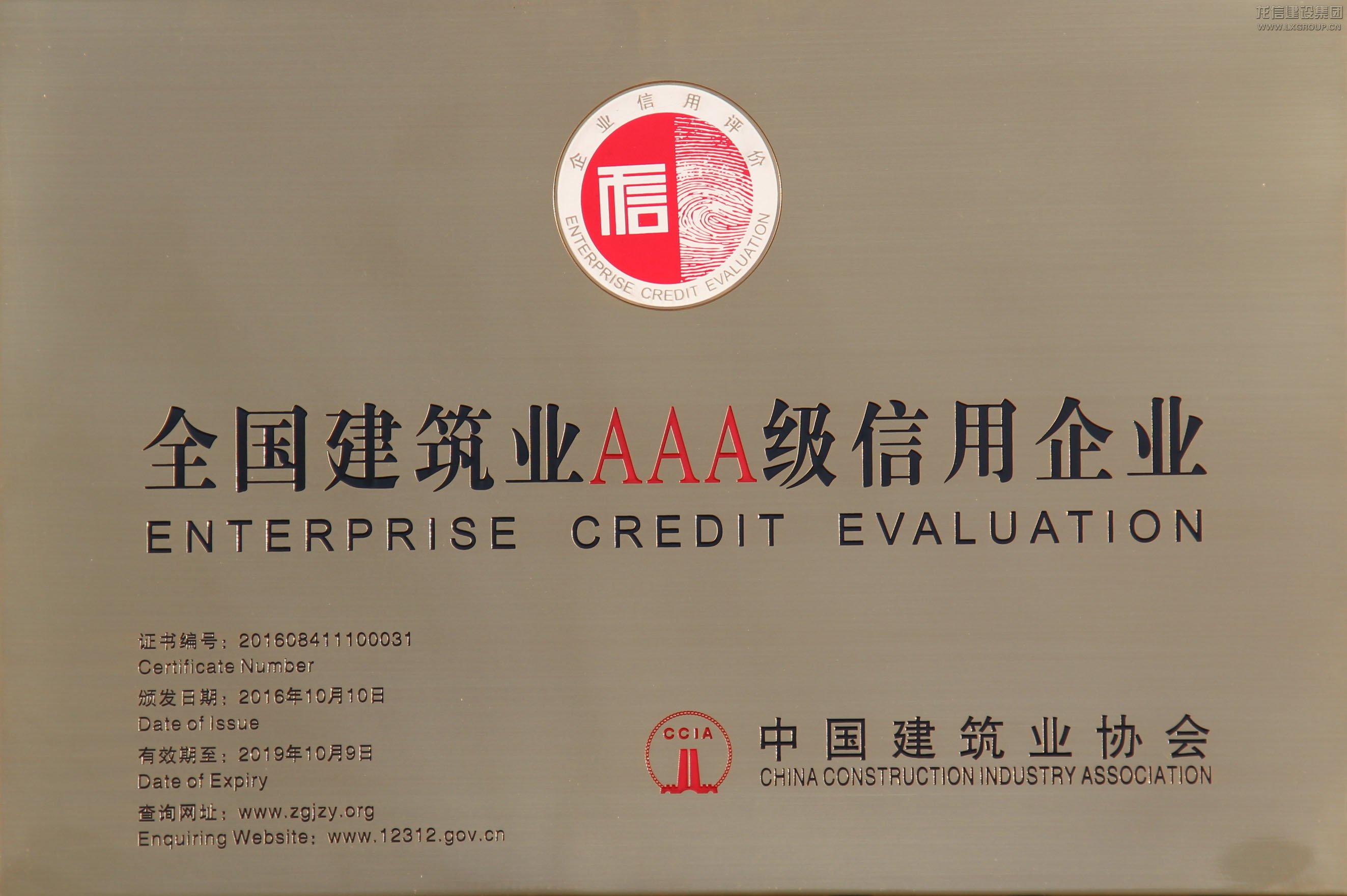 全国建筑业AAA级信用企业2016