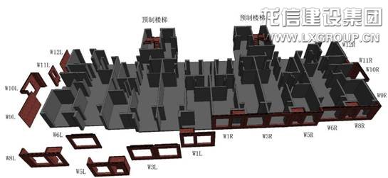 在100米以下公共建筑中采用预制装配整体式框架剪力墙结构体系,柱、梁、叠合板、楼梯、阳台预制装配,剪力墙现浇;适用市中心场地狭小、环保要求高、工期要求紧的项目。